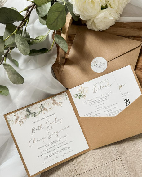 All invitation packages start with a standard card invitation. From there, you can then add on as many additional extras as you'd like to enhance your design. This may include things like Vellum Wrap, Wax Seals, Ribbon and so on. A full list of all the extras that can be included will be sent to you after your initial enquiry.